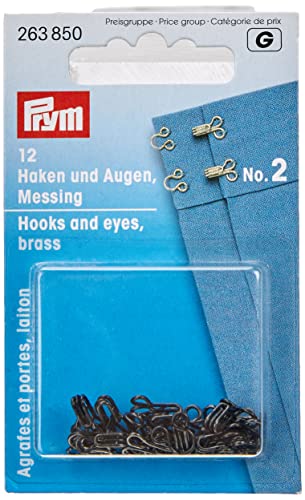 Prym Mässing No.2 Krokar Och Ögon 12-Delar, 12 mm Storlek, Svart