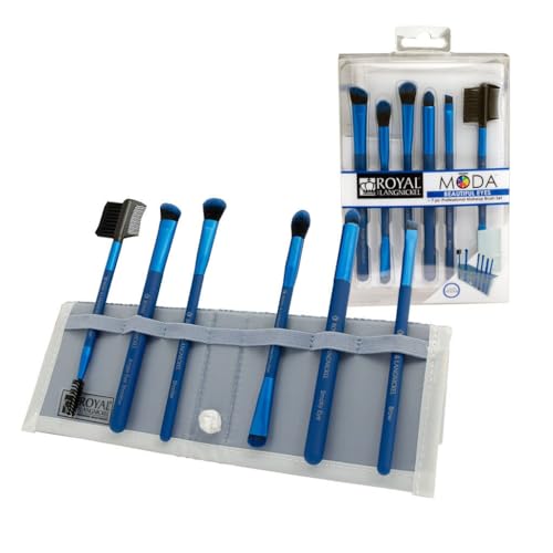 MODA Royal & Long nickel makeup-penselset med väska, resestorlek, 7 delar, inklusive vinkelskugga, vik-förtorkare, ögonskugga, rökiga ögon, ögonbryns-liner och ögonfransar, blå