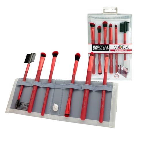 MODA Royal & Long nickel makeup-penselset med väska, resestorlek, 7 delar, inklusive vinkelskugga, vik-förtorkare, ögonskugga, rökiga ögon, ögonbrynspenna och ögonfransar, röd