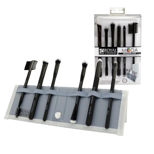 MODA Royal & Long nickel makeup-penselset med väska, resestorlek, 7 delar, inklusive vinkelskugga, vik-förtorkare, ögonskugga, rökiga ögon, ögonbrynspenna och ögonfransar, svart