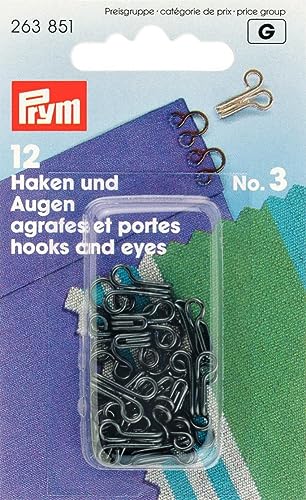 Prym Mässing Nr.3 Krokar Och Ögon 12-Delar, 18 mm Storlek, Svart
