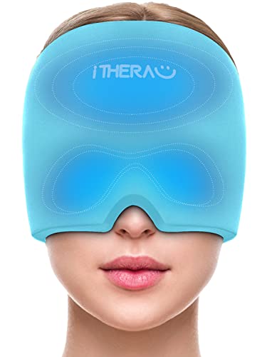 iTHERAU Migän mask huvudvärk mask, 360° täckning justerbar migrän mössa Migraine relief cap, kall varm kompress kylkuddar gel för huvudvärk, svullna ögon, bihålor
