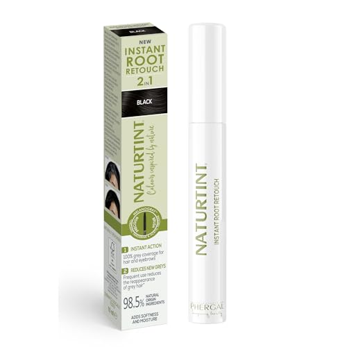 Naturtint | Instant Root Retouch | Tillfällig retuscheringsapparat för grått hår, rötter och ögonbryn | Praktiskt och bekvämt tack vare sin borste | 98,5 % naturliga ingredienser | Svart färg | 10 ml