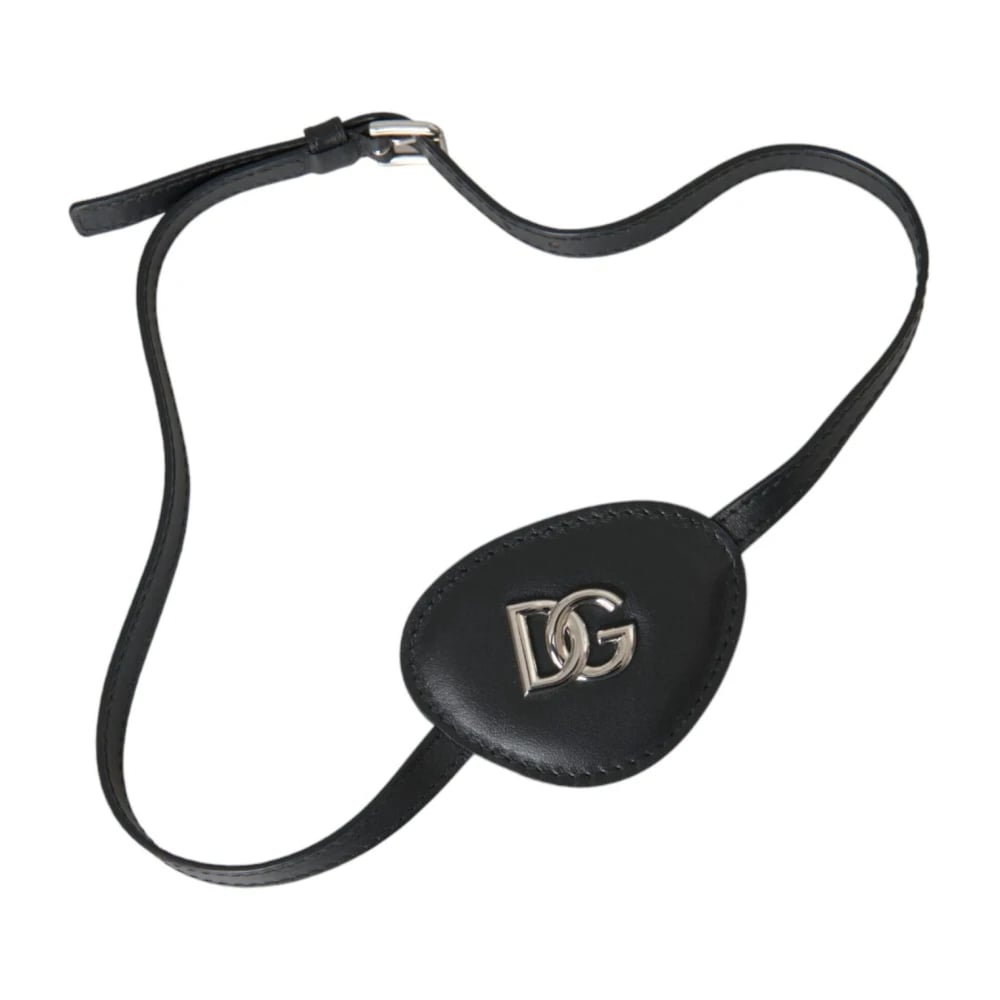 Dolce & Gabbana, Accessoarer, unisex, ONE Size, Läder, Svart Kalvskinn Metall DG Logo Ögonlapp