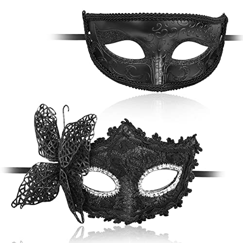AOMIG Maskerade Bollmasker, 2 st Fjärilsmask, Venetiansk ögonmask, Sexig Spets Tillbehör Par, Maskerad Mask för Halloween Karneval Fest