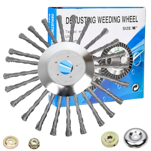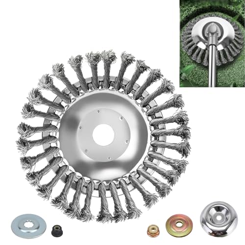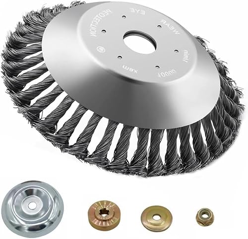 YUET grästrimmer grästrimmer-huvud, trådborste, fullstålhjul, repgräsklippare, roterande ersättningsverktyg, ogräsborste, friklippare med 25,4 mm borrning, högkvalitativ vild gräsborste för röjsåg