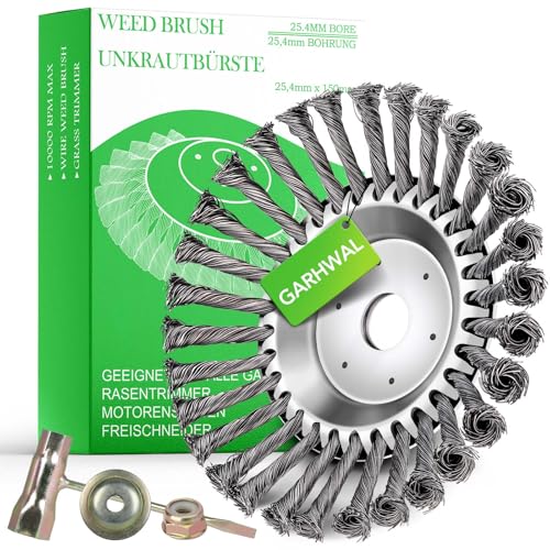 GARHWAL Ogräsborste för motorsensor, friklippare och grästrimmer – konisk borste 150 mm x 25,4 mm | Ta enkelt bort ogräs och mossa | Trädgårdsvård och rengöringsborste