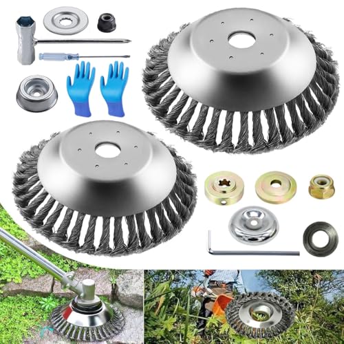 Garlavie Professionell ogräsborste i 2-pack, med 25,4 mm-hål, högkvalitativ ogräsborste för röjsåg, trådborste, för effektiv mossborttagning