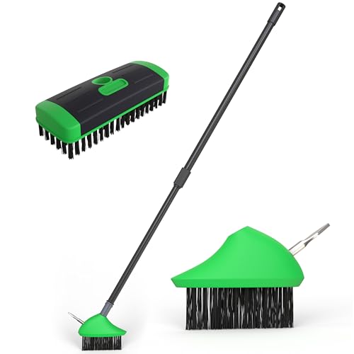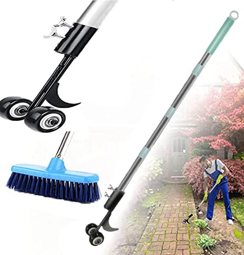 MiaoMa Uteplats ogräsborttagare verktyg styv borst borste skrapset med 125 cm långt handtag ogräs utan knäböjning, krok rensningsverktyg uteplats ogräsverktygssats med hjul – ta bort ogräs mossa från