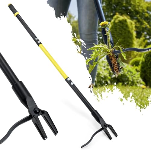 Jardineer ogräsborttagare verktyg stående, ogräsuppdragare rotborttagare med 4 klor, 114 cm långt handtag maskros ogräsverktyg för uteplats, gräsmatta, trädgård, stig, uppfart och blockbeläggning