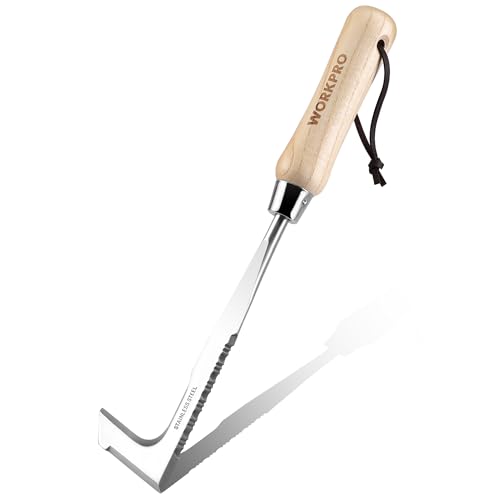 WORKPRO 30 cm verktyg för ogräsborttagning med trähandtag, tandad kant ogräsdragare, ogräsborttagare med rostfritt stål, trädgårdsverktyg för trädgårdsskötsel mossa och ogräs