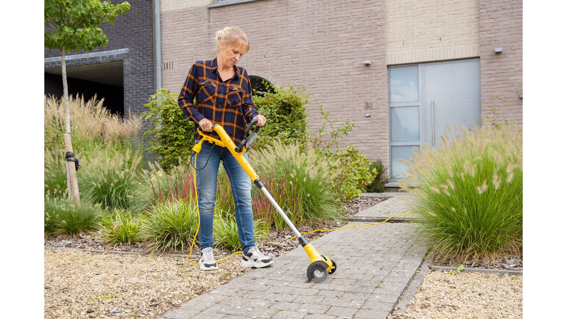 CFH E-multifunktionsborste EMB 684 – fogborste elektrisk 230 V 500 W 750–1 300 varv/min, ogräsborttagare för fogar och ytor, verktygsfritt borstbyte, teleskophandtag, TÜV SÜD GS certifierad