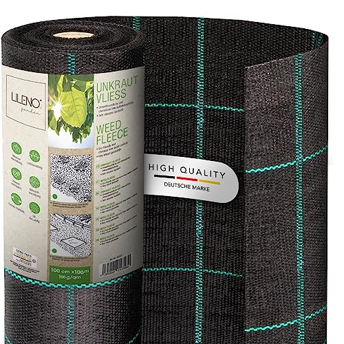 LILENO HOME 100 m² anti-ogräsduk [100 g/kvm] – trädgård ogräsfolie vattentät – slitstarkt bandtyg ogräsfolie – med rutnät och UV-resistent [1 m x 100 m]
