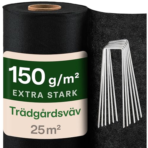 GardenGloss 25m² Ogräsduk Trädgårdsduk 150g/m² Extra Stark Mot Ogräs – Extremt Rivtålig Och Hög UV-Stabilisering – Ogräsduk Vatten Genomtränglig (25m x 1m, 1 Rulle)