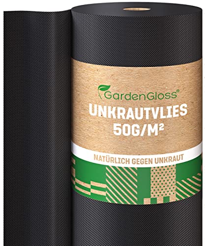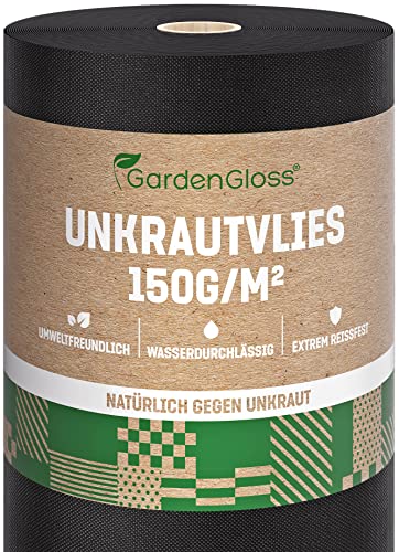 GardenGloss 50m² Ogräsduk Trädgårdsduk 150g/m² Extra Stark Mot Ogräs – Extremt Rivtålig Och Hög UV-Stabilisering – Ogräsduk Vatten Genomtränglig (50m x 1m, 1 Rulle)