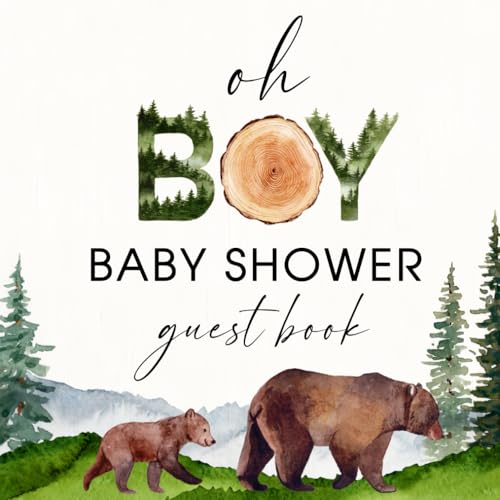 Full Color Baby Shower Guest Book: Oh Boy Forest Bear Woodland Decorations