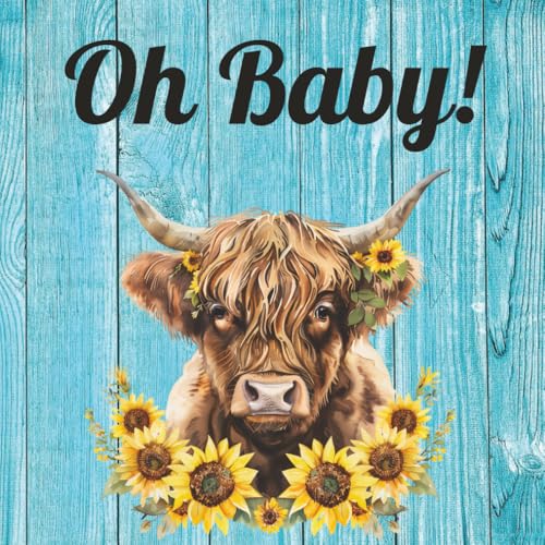 Oh Baby!: Baby Shower Guest Book: Memory Party Keepsake Rustic Blue Highlander Cow Themed with Sunflowers Book Advice for Parents, Unique with ... for Boy or Girl and 40 Sign In for Guests