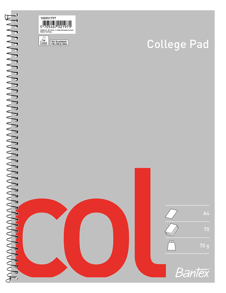Kollegieblock Bantex Col A4 70g olinjerat ohålat