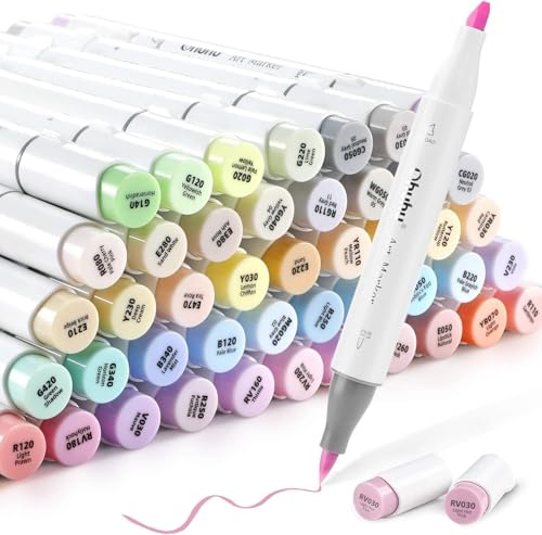 Ohuhu Pastell Markers 48 Färger, Dubbelspets (Borste & Mejselspets), Alkoholbaserat Bläck - Mjuka Pastelltoner för Skissning Kalligrafi Teckning och Illustrering Honolulu Series