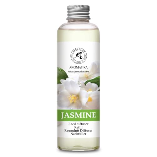 Jasmine Diffuser Refill w/Natural Essential Jasmine Oil 200ml - Intensive - Fresh & Long Lasting Fragrance - Scented Reed Diffuser - 0% Alcohol - Best for Aromatherapy - Great Room Air Fresheners