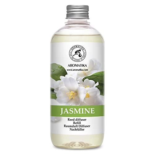 Jasmine Diffuser Refill w/Natural Essential Jasmine Oil 500ml - 0% Alcohol - Best for Aromatherapy - Intensive - Fresh & Long Lasting Fragrance - Scented Reed Diffuser - Great Room Air Fresheners