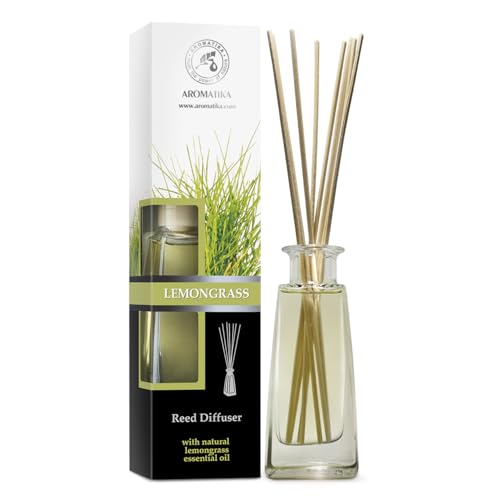 Lemongrass Reed Diffuser w/Natural Essential Lemongrass Oil 200ml - Intensive - Fresh And Long Lasting Fragrance - Scented Reed Diffuser - 0% Alcohol - Diffuser Gift Set w/ 8 Bamboo Sticks