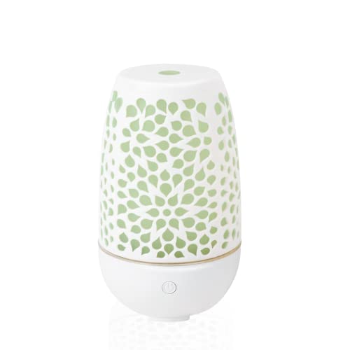 Earnest Living Aroma Diffuser för eteriska oljor 100 ml - Vit Keramisk Doft Doft Oil Diffuser - Elektrisk doftlampa, luftfuktare, sänglampa - 7 ljusfärger, timer, automatisk avstängning