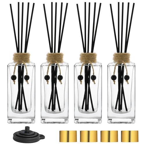 Reed Diffuser Bottle Set of 4 Glass Diffuser Bottles 5oz/155ml Clear Empty Essential Oil Diffuser Glass Bottles with Caps and Reeds Decorative Bottle Set Bulk Reusable Apothecary Perfume Jar GiftQ