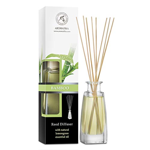 Reed Diffuser Bamboo 100ml with lemongrass essential oil - Fresh & Long Lasting Fragrance - Alcohol Free - Gift Set with 8 Bamboo Sticks - Best for Aromatherapy - Spa - Home - Kitchen - Bath - Office