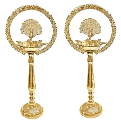 IMTRA FASHION Peacock Diya Set Med 2 St Kerala Samai Med Bomullsvekar Kuthu Vilakku För Pooja Indian Oil Lamp Diwali Diya Med Stativ