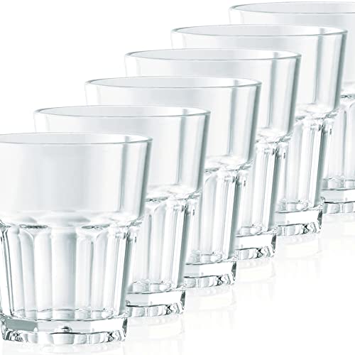 Kerafactum 6 okrossbara glas koppar hållbara vattenglas av robust plast juice vatten whiskyglas partybägare whiskykopp dryckesbägare set i äkta glasoptik stapelbar BPA-fri tumbler