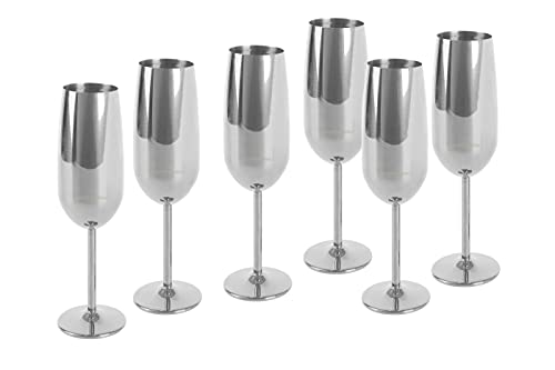 ECHTWERK champagneglas, champagneglas, champagneglas, champagneglas av rostfritt stål, okrossbara glas, partyglas för bröllop/födelsedag/picknick, presentset, 6 stycken, 250 ml, silverutgåva