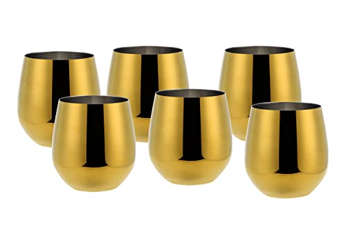 Echtwerk Vinglas, 6 delar rödvinsglas, dryckeskoppar av rostfritt stål, okrossbara dricksglas, okrossbara glas, guldutgåva, 500 ml