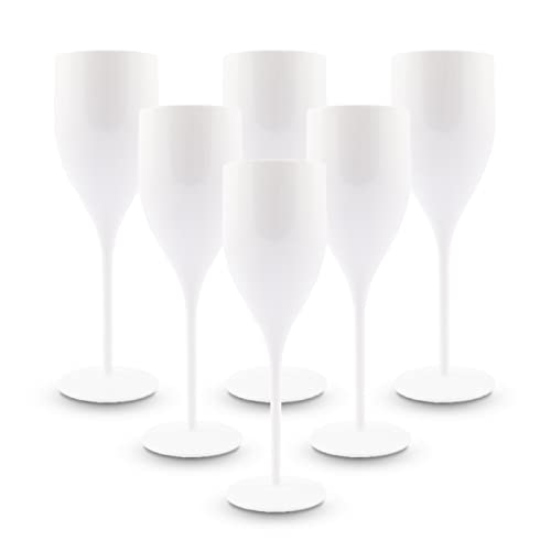 BRYNA - 6-delars set med 18 cl flöjtglas i polycarbonat (hårdplast), 100% italiensk design, okrossbara glas, återanvändbara och diskmaskinssäkra vinglas, vita