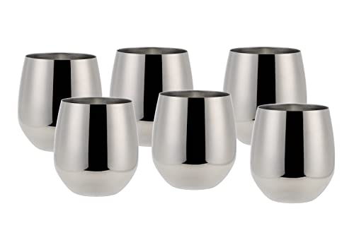 Echtwerk Vinglas, 6 delar rödvinsglas, dryckeskoppar av rostfritt stål, okrossbara dricksglas, okrossbara glas, silverutgåva, 500 ml