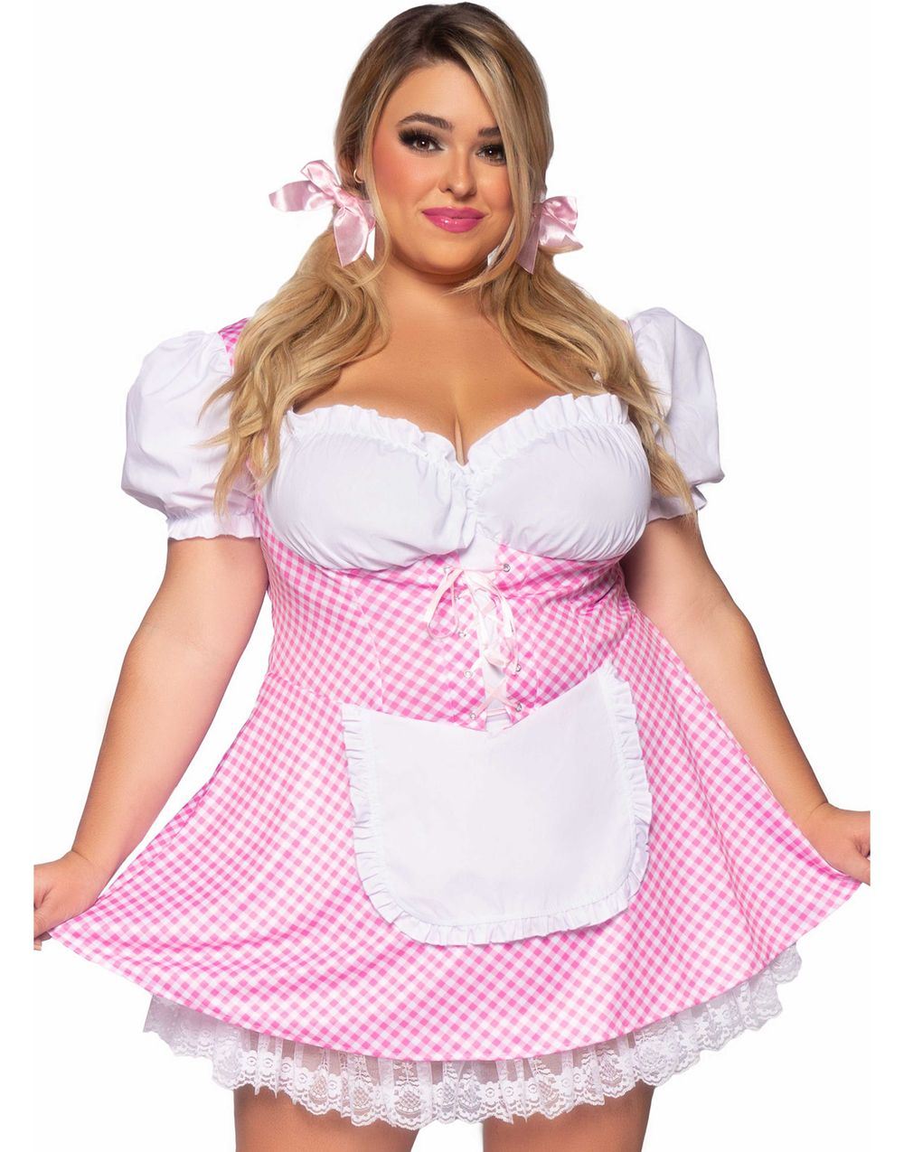 Flirtig rosa och vit Oktoberfest-klänning - plusstorlekar