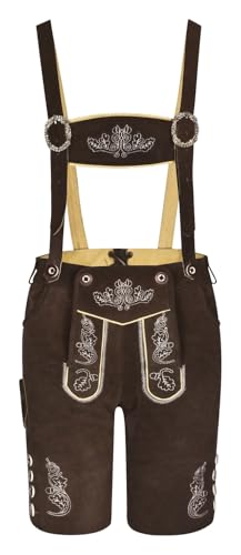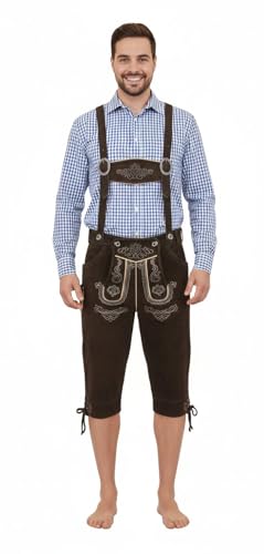 AMZHOTER Lederhosen Oktoberfest-kostym för herr traditionella lädershorts trachten kostymbyxor läderbyxor oktoberfest mörkbrun/brun, Brun, 58