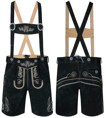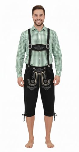 TR Martha Lederhosen i knälängd för män, eleganta kostymbyxor, storlek 40–60, långa lederhosen med hängslen för män, Oktoberfest-byxor, designer-läderbyxor i 3 färgvarianter, svart, 48 SE