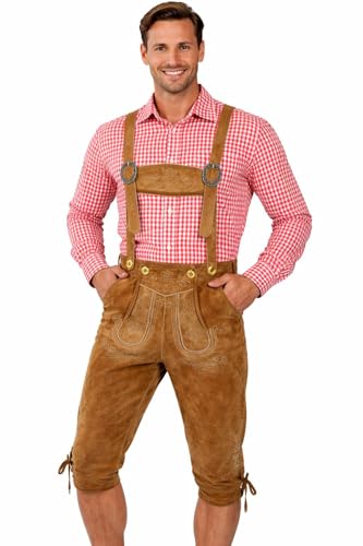 Humle och malt, folkdräktsläderbyxor för män, oktoberfest, knäbyxor med hängslen, bruna – original, traditionella läderbyxor, knäbyxor, lederhosen (60, ljusbrun), Hellbraun, 60