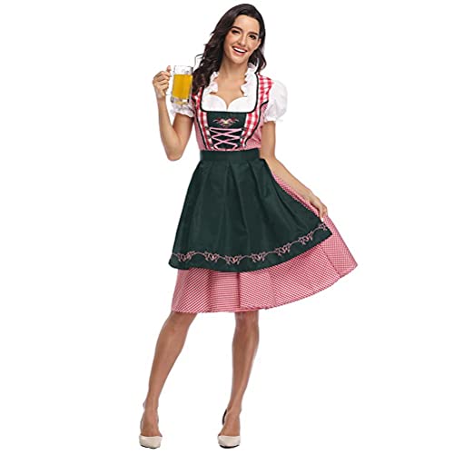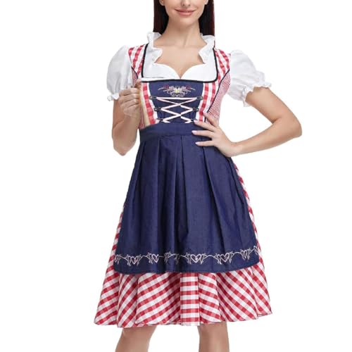 Yabauuop Dirndl-klänningar dam | rutig oktoberfest-kostym Dirndl-klänningar dam | traditionell öl-karneval-outfit, bayersk cosplay för fest halloweenkostym