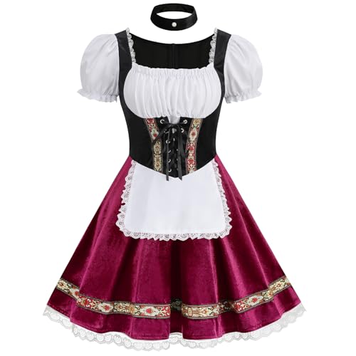 maxToonrain Oktoberfest-outfit för kvinnor, tysk, öl, bayersk, traditionell, kortärmad, sammet, halloween-dräkt, hembiträde, klänning för kvinnor (röd, L)