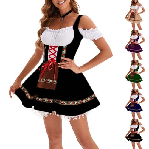 maxToonrain Oktoberfest-outfit för kvinnor, tysk, öl, bayersk, traditionell, kortärmad, sammet, halloween-dräkt, hembiträde, klänning för kvinnor (svart, XL)