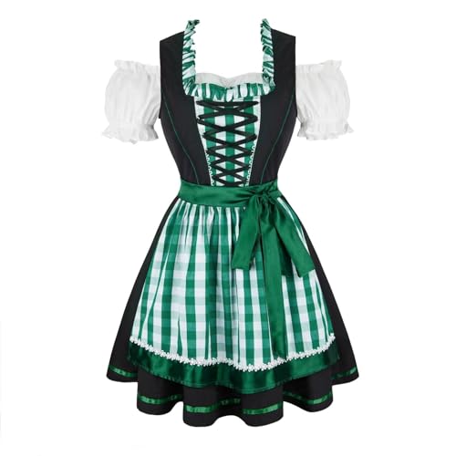 QJIRZB Oktoberfest outfit kvinnor bayersk dirndl klänning maskeraddräkt halloween 3-delat set karneval traditionell (grönvit, S)