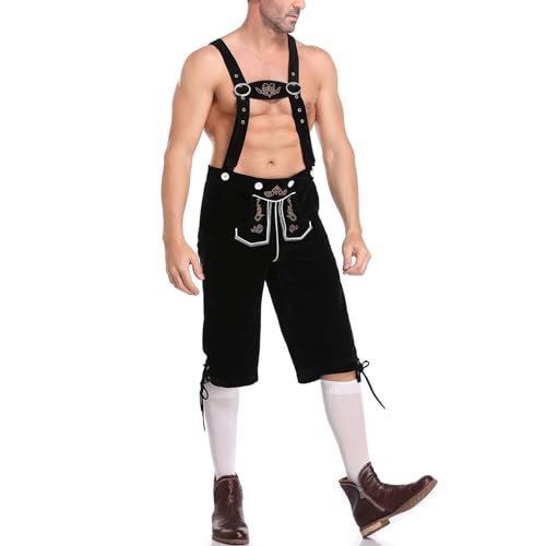 Oktoberfest-kostym för män | Tysk oktoberfest traditionell outfit för Halloween, karneval och fester | Oktoberfest bayersk kostym | ölfestival hängselshorts | festivalkostym för män, Svart, L