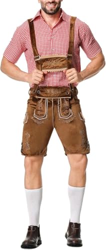 Fasheepfa Lederhosen Kostym set för män kostym set män Oktoberfest outfit komplett traditionell skjorta rutig skjorta hängselbyxor bayersk utklädning (brun, XXL)