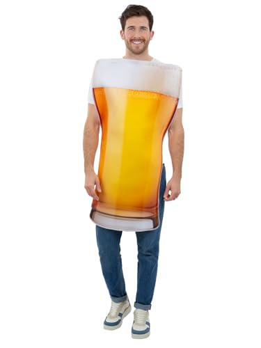 Smiffys Ölpint Kostym Poncho för vuxna, rolig fin klänning öl dräkt, svensexa gör-kostymer, karneval festkläder, nyhet ölglas outfit, rolig kostym, unisex ölmugg utklädnad för män och kvinnor