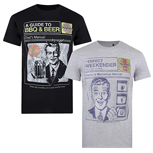 Haynes Herr BBQ och öl pack t-shirt, multi, liten (förpackning med 2)