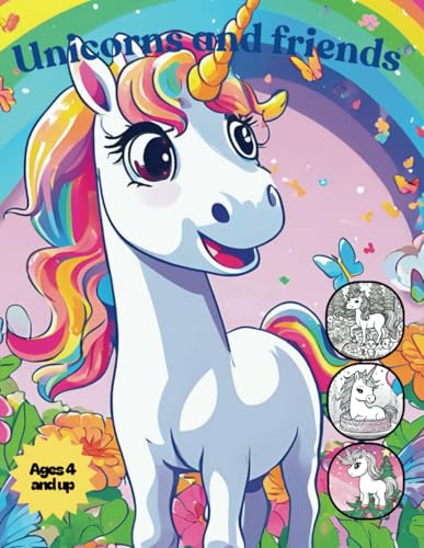 Unicorns and friends coloring book for kids: Fun coloring pages for children ages 4 years old and up