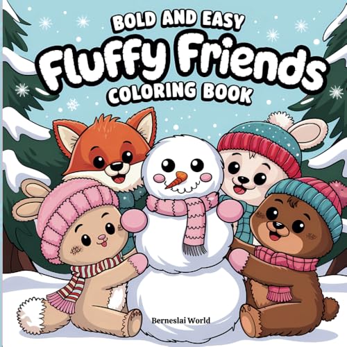Fluffy Friends: Bold and Easy Christmas coloring book for Kids from 6 years old