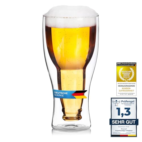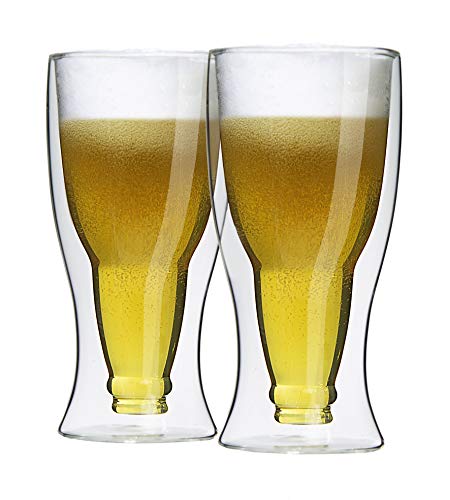 Uppsättning av 2 dubbelväggiga termo-ölglas (2 glas!) tillverkad av borosilikatglas 350 ml påfyllningsmängd omfylld ölflaska, termoglas, termoglas, extra stor